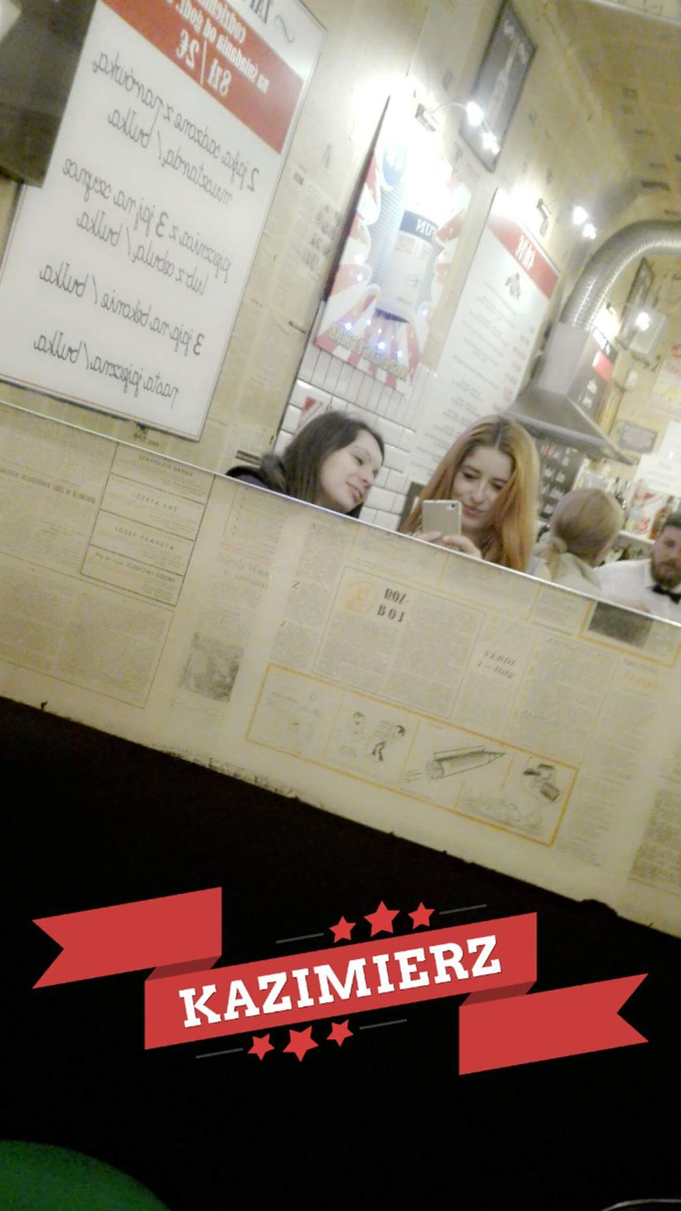 Tak czy inaczej, do rzeczy. Przyjechałyśmy do Krakowa we wtorek wieczorem i oczywiście od razu zapieksy na Kazimierzu i zdjęcie w pijalni.